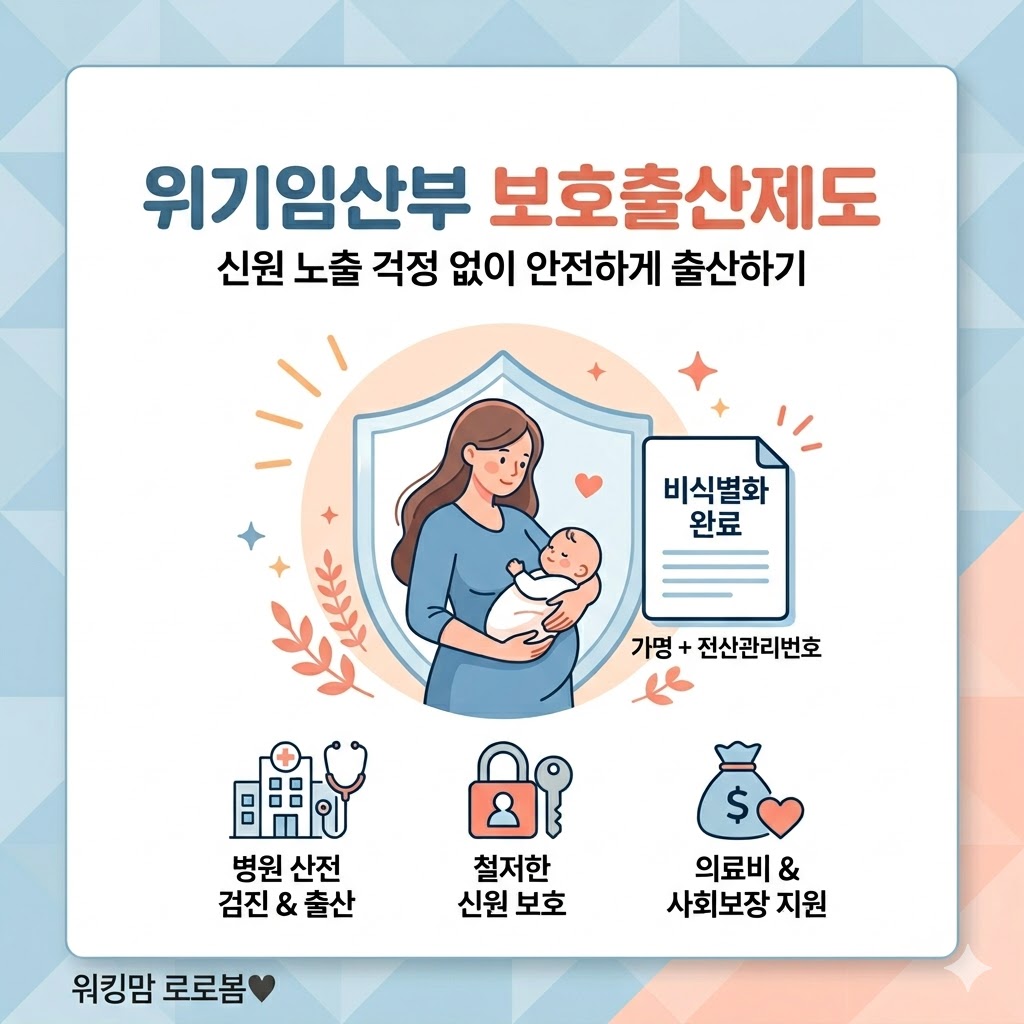 지금까지 신원 노출의 두려움 없이 안전하게 의료적 처치를 받고 출산할 수 있도록 돕는 보호출산제도의 기본 개념부터 구체적인 신청 자격, 그리고 실제 의료기관 이용 절차까지 상세하고 객관적으로 살펴보았습니다. 본문의 핵심을 요약하자면, 지정된 지역상담기관에서 위기임신 및 출산과 관련된 충분한 상담을 마친 후 보호출산을 정식으로 신청하면 가명과 사회보장 전산관리번호를 부여받아 완벽한 비식별화 조치가 이루어집니다. 이후 발급받은 전용 임산부확인서를 통해 본인이 원하는 의료기관에서 신분증이나 건강보험증 없이도 안전하게 산전 검진과 출산을 진행할 수 있으며, 발생되는 모든 의료 기록 역시 비식별화된 상태로 철저하고 안전하게 관리됩니다. 홀로 예기치 못한 어려움을 겪고 있는 임산부들이 이러한 체계적인 법적 지원 제도를 적극적으로 활용하여, 산모 본인과 태어날 소중한 생명의 건강을 모두 안전하게 지켜낼 수 있기를 바랍니다.