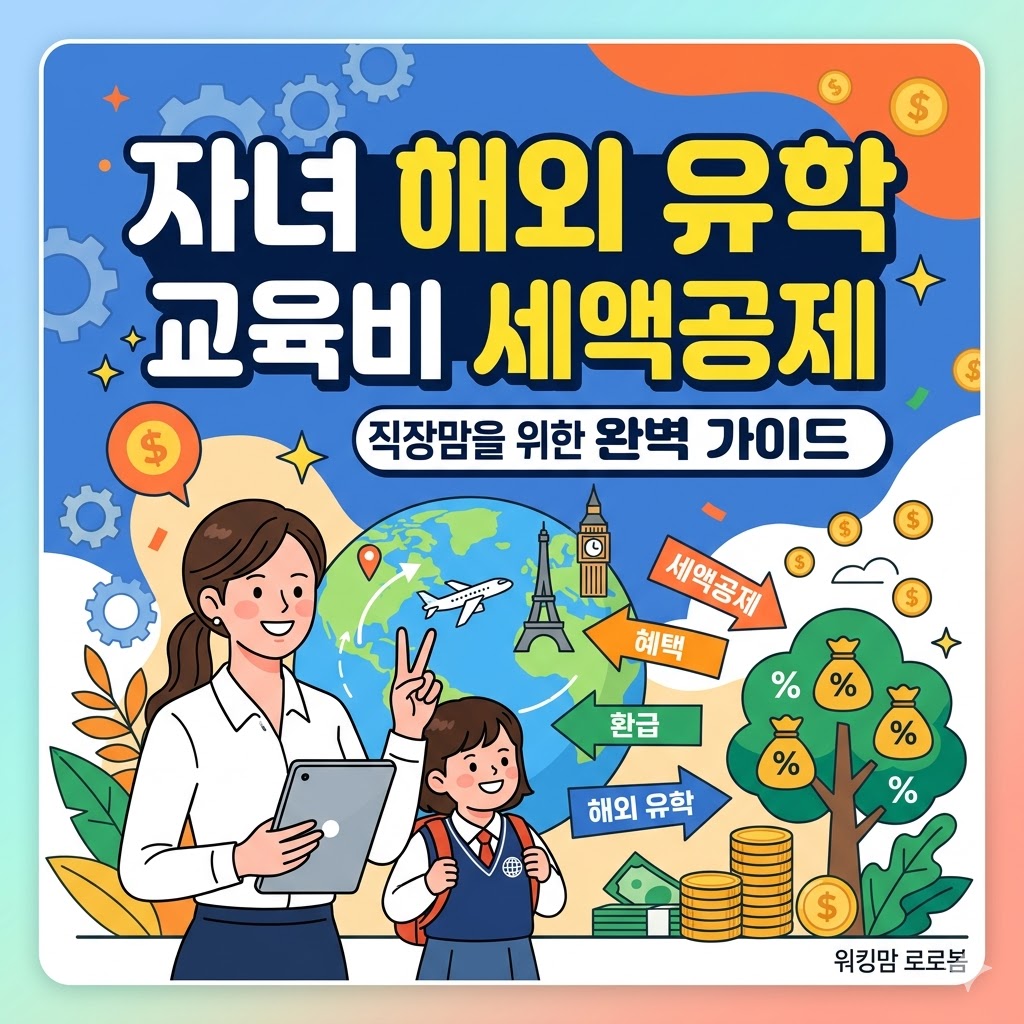 해외 유학 중인 자녀를 둔 워킹맘이나 근로자라면 국외 교육비 세액공제는 놓쳐서는 안 될 중요한 세제 혜택입니다. 자녀가 다니는 학교가 우리나라 학제상의 학교에 해당하고, 초·중학생의 경우 유학 자격이나 거주 요건을 충족한다면 연간 지출액의 15%를 세액에서 공제받을 수 있습니다. 한도는 미취학 및 초·중·고생 연 300만 원, 대학생 연 900만 원까지입니다.