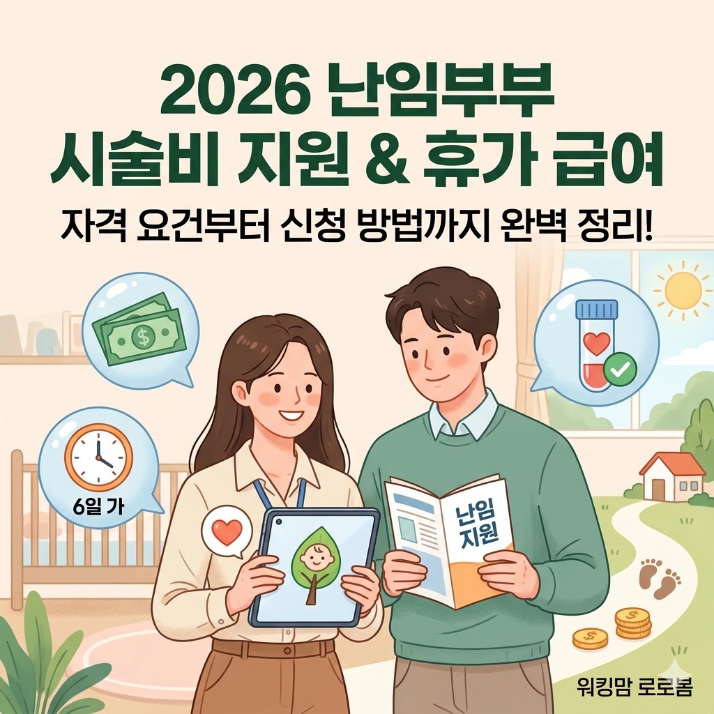 난임 지원 제도는 임신을 준비하는 부부에게 경제적, 시간적 여유를 제공하는 필수적인 복지입니다. 시술비는 출산당 최대 25회까지 두텁게 지원되며, 2026년 기준 결정 통지서의 유효기간이 6개월로 길어져 심리적인 조급함을 덜 수 있게 되었습니다. 또한, 일하는 부모라면 연간 6일의 난임치료휴가를 당당히 요구하고, 최초 2일에 대한 급여 지원(최대 16.8만 원)을 통해 소득 손실 없이 치료에 전념할 수 있습니다.